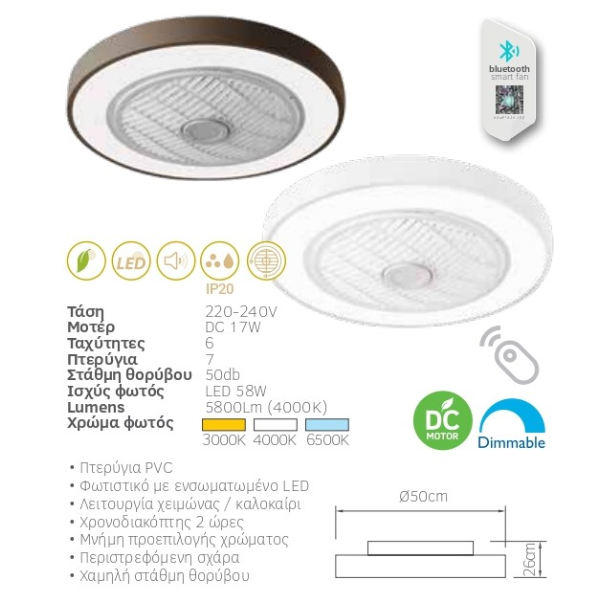 ΑΝΕΜΙΣΤΗΡΑΣ ΟΡΟΦΗΣ-ΠΛΑΦΟΝΙΕΡΑ ΜΕ LED ΦΩΣ 50W ΚΑΙ ΤΗΛΕΧΕΙΡΙΣΤΗΡΙΟ ΚΑΦΕ