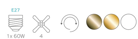 Ανεμιστήρας οροφής 02-00103-1 της εταιρείας Lineme, με ισχύ 60 Watt. Η διάμετρος του είναι 132 εκατοστά και μπορεί να καλύψει χώρους από 15 m² έως 20 m².
