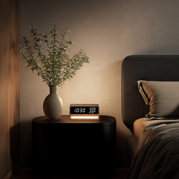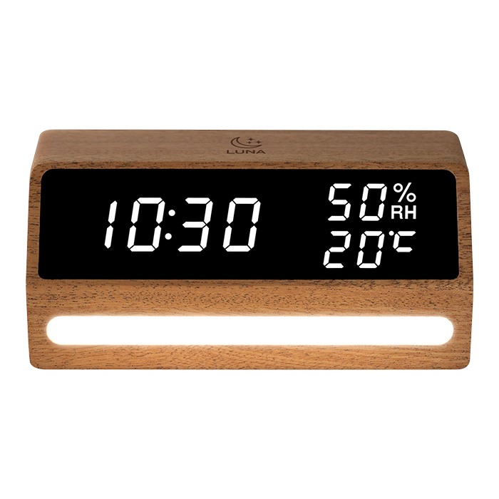 ΞΥΛΙΝΟ ΨΗΦΙΑΚΟ ΘΕΡΜΟΜΕΤΡΟ/ΥΓΡΟΜΕΤΡΟ ΕΣΩΤΕΡΙΚΟΥ ΧΩΡΟΥ ΜΕ ΡΟΛΟΙ,ΞΥΠΝΗΤΗΡΙ ΚΑΙ ΦΩΤΑΚΙ ΝΥΚΤΟΣ