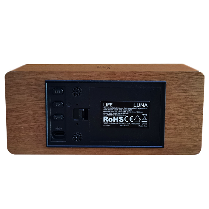 ΞΥΛΙΝΟ ΨΗΦΙΑΚΟ ΘΕΡΜΟΜΕΤΡΟ/ΥΓΡΟΜΕΤΡΟ ΕΣΩΤΕΡΙΚΟΥ ΧΩΡΟΥ ΜΕ ΡΟΛΟΙ,ΞΥΠΝΗΤΗΡΙ ΚΑΙ ΦΩΤΑΚΙ ΝΥΚΤΟΣ 221-0486 LIFE