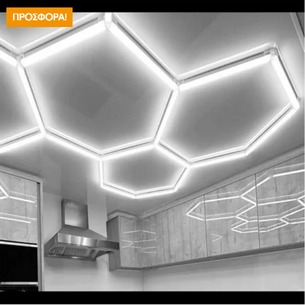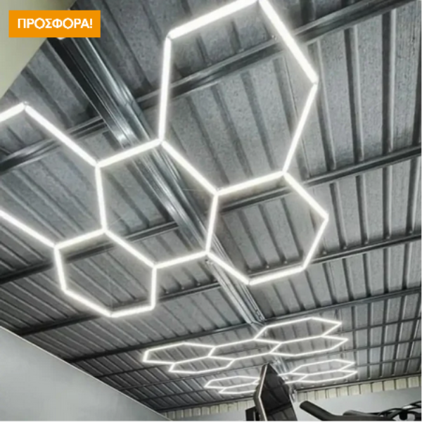 Αρθρωτό σύστημα φωτισμού ”HEXAGON 5”. Αναδείξτε τον χώρο με μοναδικό και ελκυστικό τρόπο με το εξαγωνικό μας σύστημα φωτισμού. Είναι κατάλληλο για επαγγελματικό φωτισμό, επαγγελματικές λεπτομέρειες αυτοκινήτων, κουρεία, γυμναστήρια και ενσωματώνεται τέλεια στο γκαράζ σας. Οι λάμπες μπορούν εύκολα να στερεωθούν σε μια επίπεδη επιφάνεια στην οροφή, στον τοίχο ή μπορούν να αναρτηθούν όπου χρειάζεται.